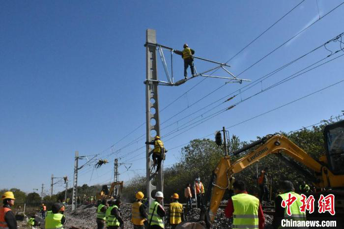 據(jù)了解,由中鐵十局承建的引江濟淮工程(安徽段)引起寧西、滬蓉高鐵四電改建工程,主要內(nèi)容包括寧西、滬蓉高鐵改建工程涉及的通信、信號、信息及災(zāi)害監(jiān)測,電力及電力牽引供電專業(yè)施工。工程工期長,施工任務(wù)重、安全風險大,共需要進行5次大的施工撥接。此次撥接為該工程第4次撥接施工,主要是因為由東向西的寧西鐵路跨越引江濟淮主河道,成為河道向北開挖的“攔路虎”,因此要在原有寧西下行鐵路的南側(cè)修建一條臨時便線,為引江濟淮工程騰出施工作業(yè)面。