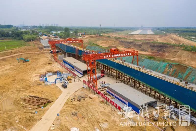 5月1日,航拍合肥市引江濟淮工程G312合六葉公路橋。4月27日,中鐵五局引江濟淮J007-1標項目部承建的G312公路橋3#鋼箱梁橋主跨成功合龍,標志著該橋的施工生產(chǎn)取得階段性勝利。