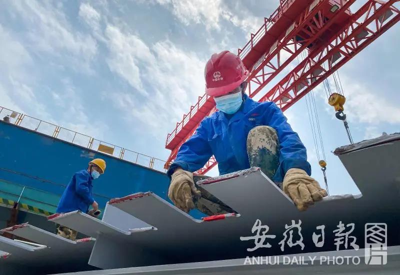 5月1日,航拍合肥市引江濟淮工程G312合六葉公路橋。4月27日,中鐵五局引江濟淮J007-1標項目部承建的G312公路橋3#鋼箱梁橋主跨成功合龍,標志著該橋的施工生產(chǎn)取得階段性勝利。